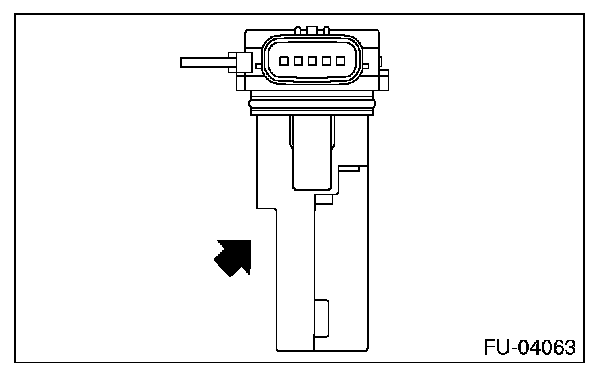 2. Check the voltage changes when air is blown to the mass air flow sensor unit in arrow direction.