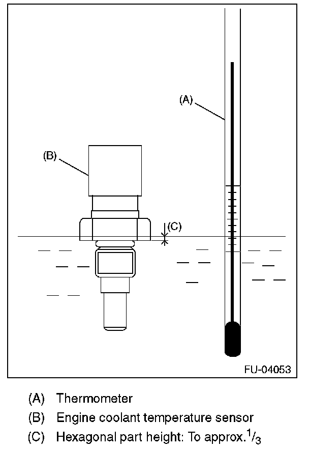 2. Immerse the engine coolant temperature sensor and a thermometer in water.