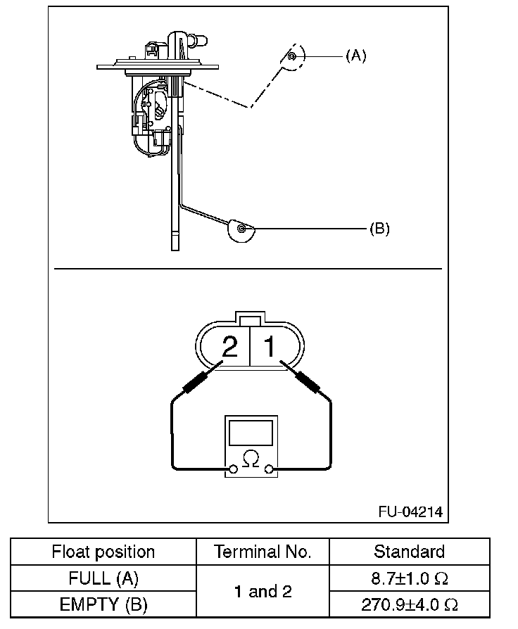 Measure the resistance between fuel sub level sensor terminals.