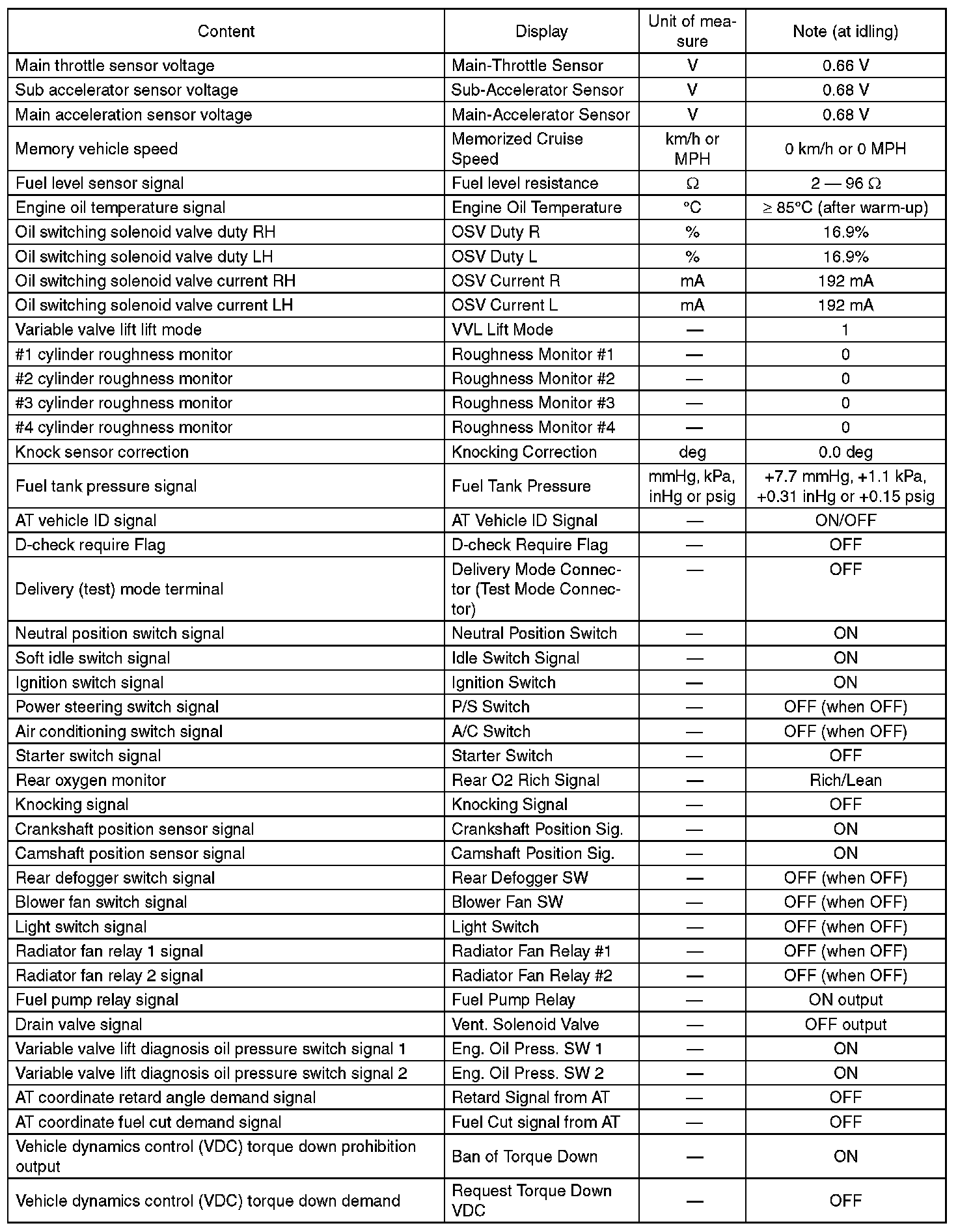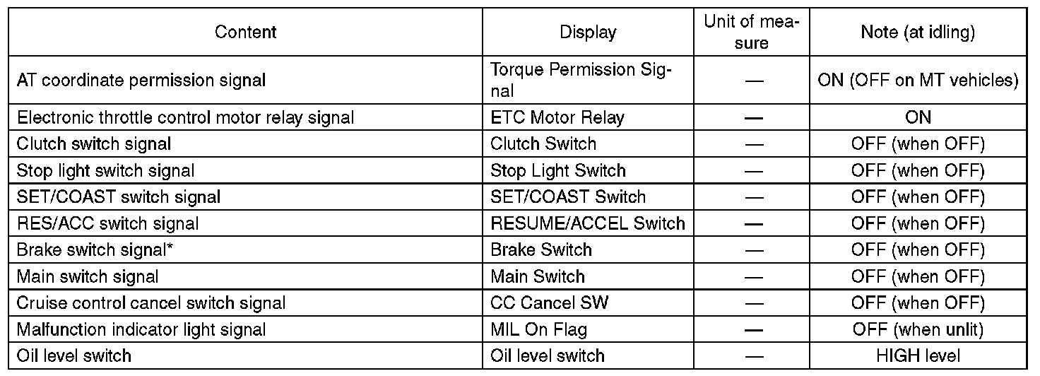 - *: For models without cruise control, the brake switch signal does not change.