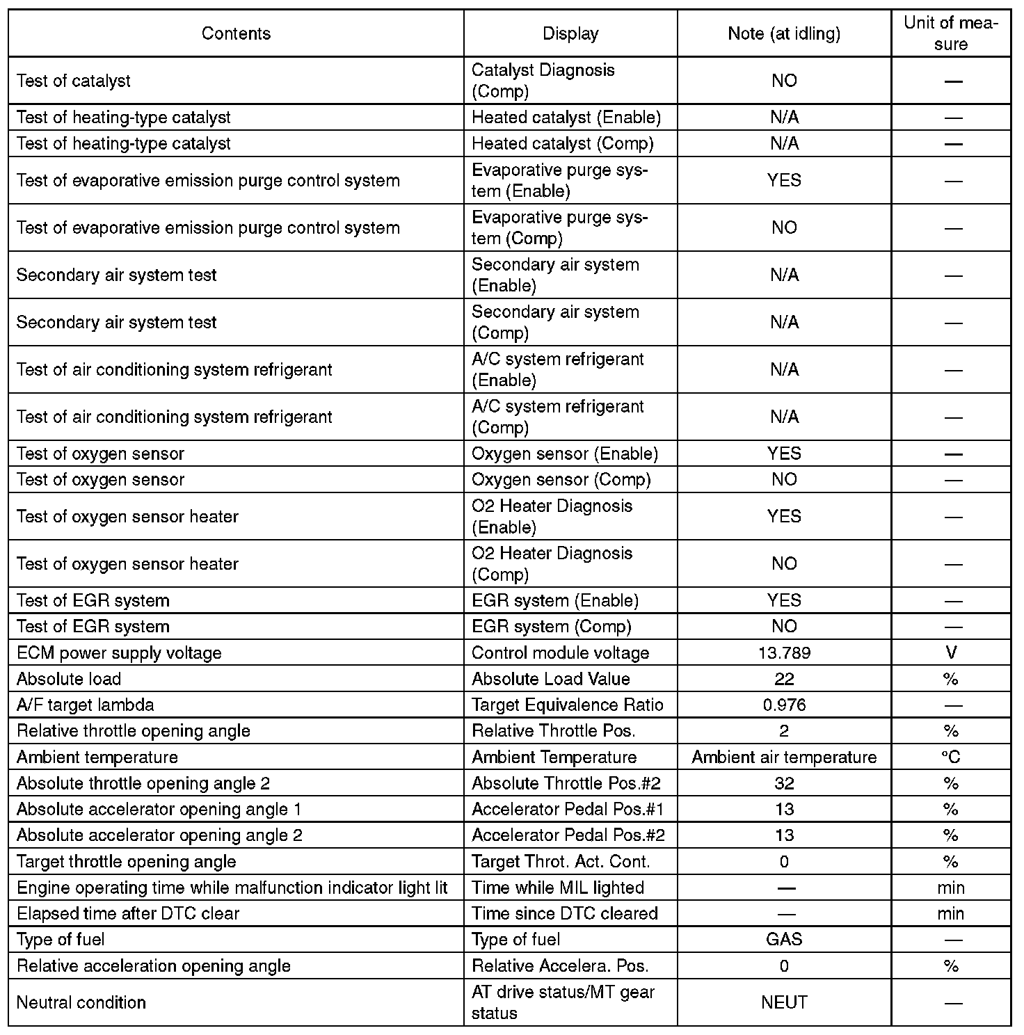 3. READ CURRENT DATA FOR ENGINE (OBD MODE)