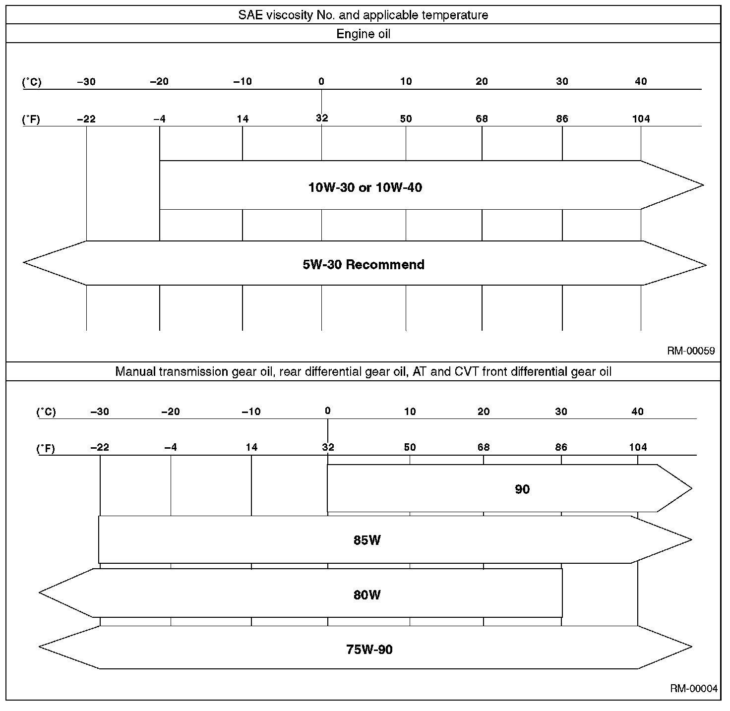 Use the lubricants shown in the table below, or equivalent. See the table below to choose the correct SAE viscosity.