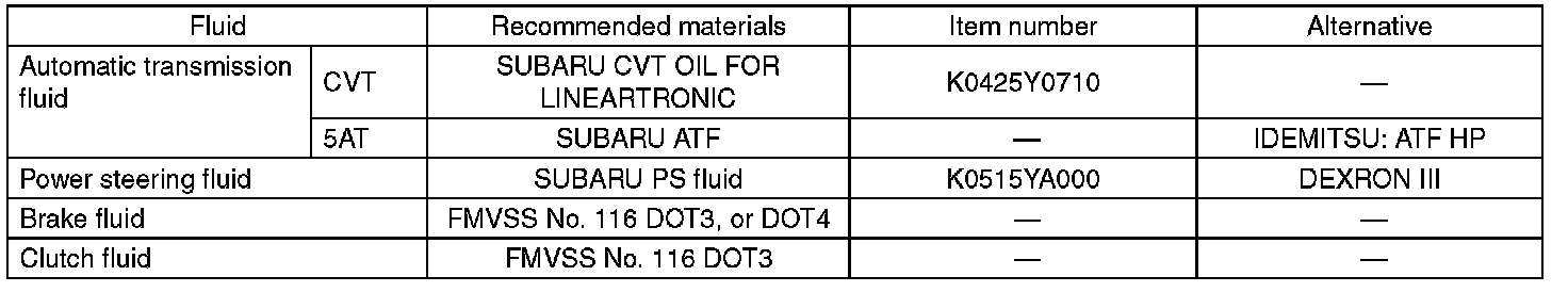 CAUTION: Be sure to use the recommended or equivalent ATF or CVTF. Using material except recommended one or substitute would cause trouble.