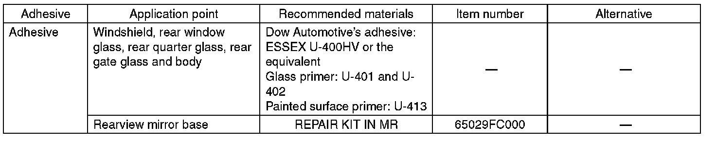 Use the adhesives shown in the table below, or equivalent.