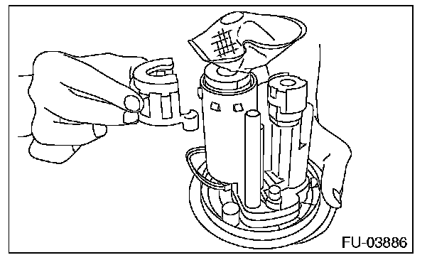 5. Remove the fuel pump holder from the fuel filter assembly.