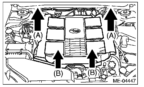 2. Lift up the front side holding two positions (B) while moving it in the forward direction of the vehicle.