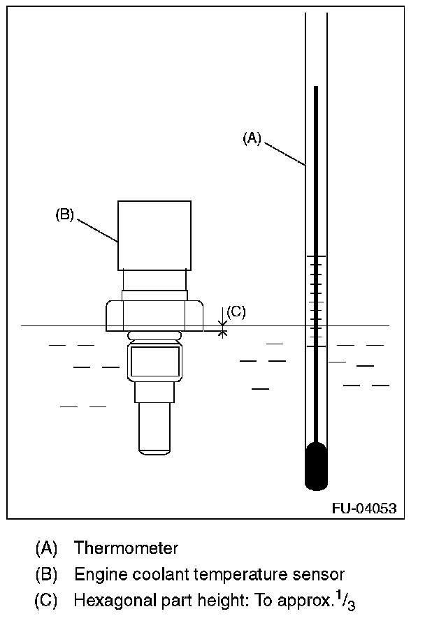2. Immerse the engine coolant temperature sensor and a thermometer in water.