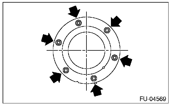 - After tightening the bolts to the specified torque in the order indicated in the figure, install the fuel sub level sensor protector.