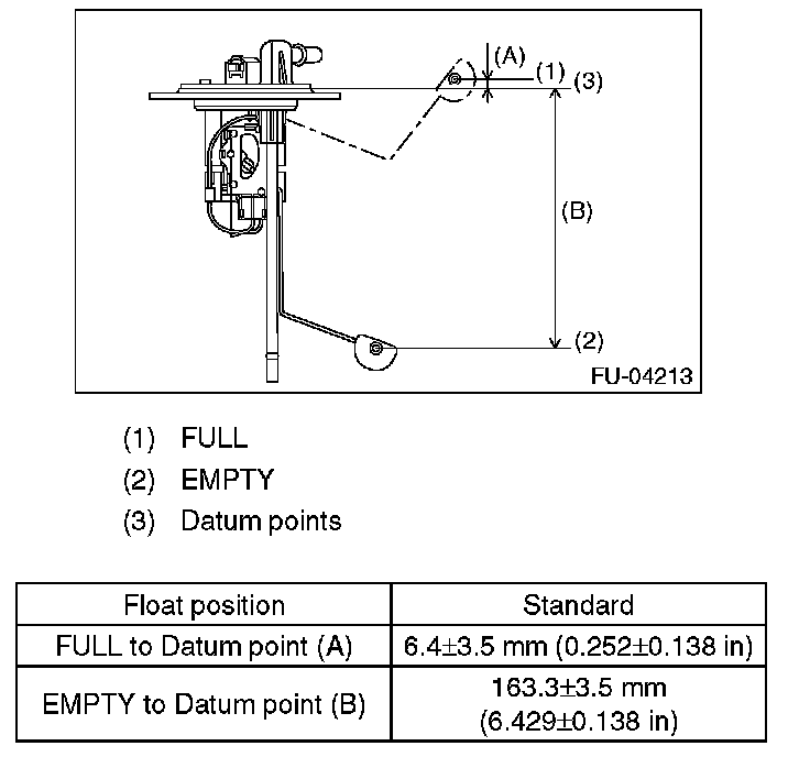 Measure the fuel sub level sensor float position.