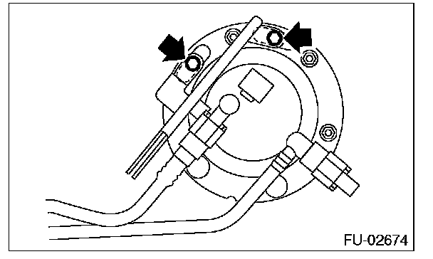 8. Remove the nuts securing the fuel sub level sensor upper plate to the fuel tank and remove the fuel sub level sensor upper plate.