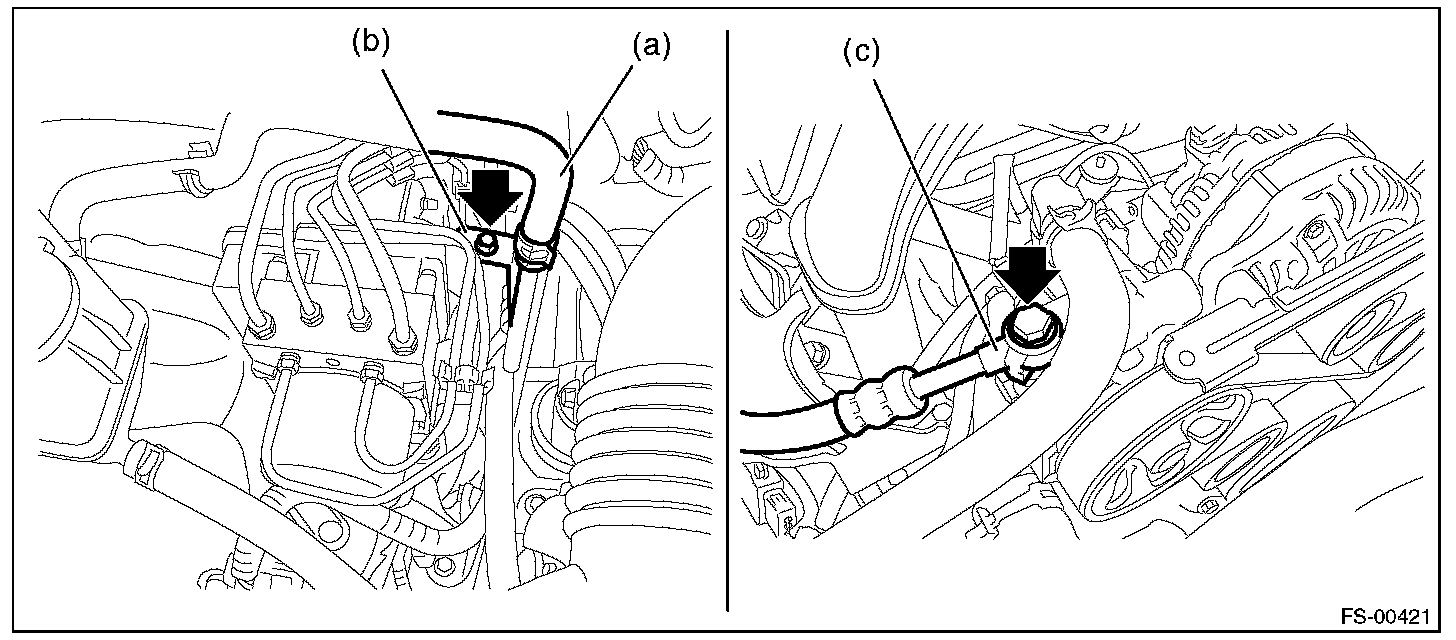 (3) Remove the bolt, and disconnect the hose (c) from the power steering pump.