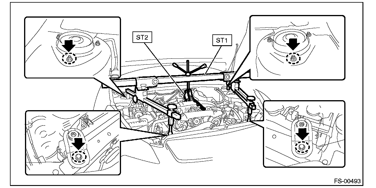 Set the arms of ST (ENGINE HANGER) at the locations shown in the figure.