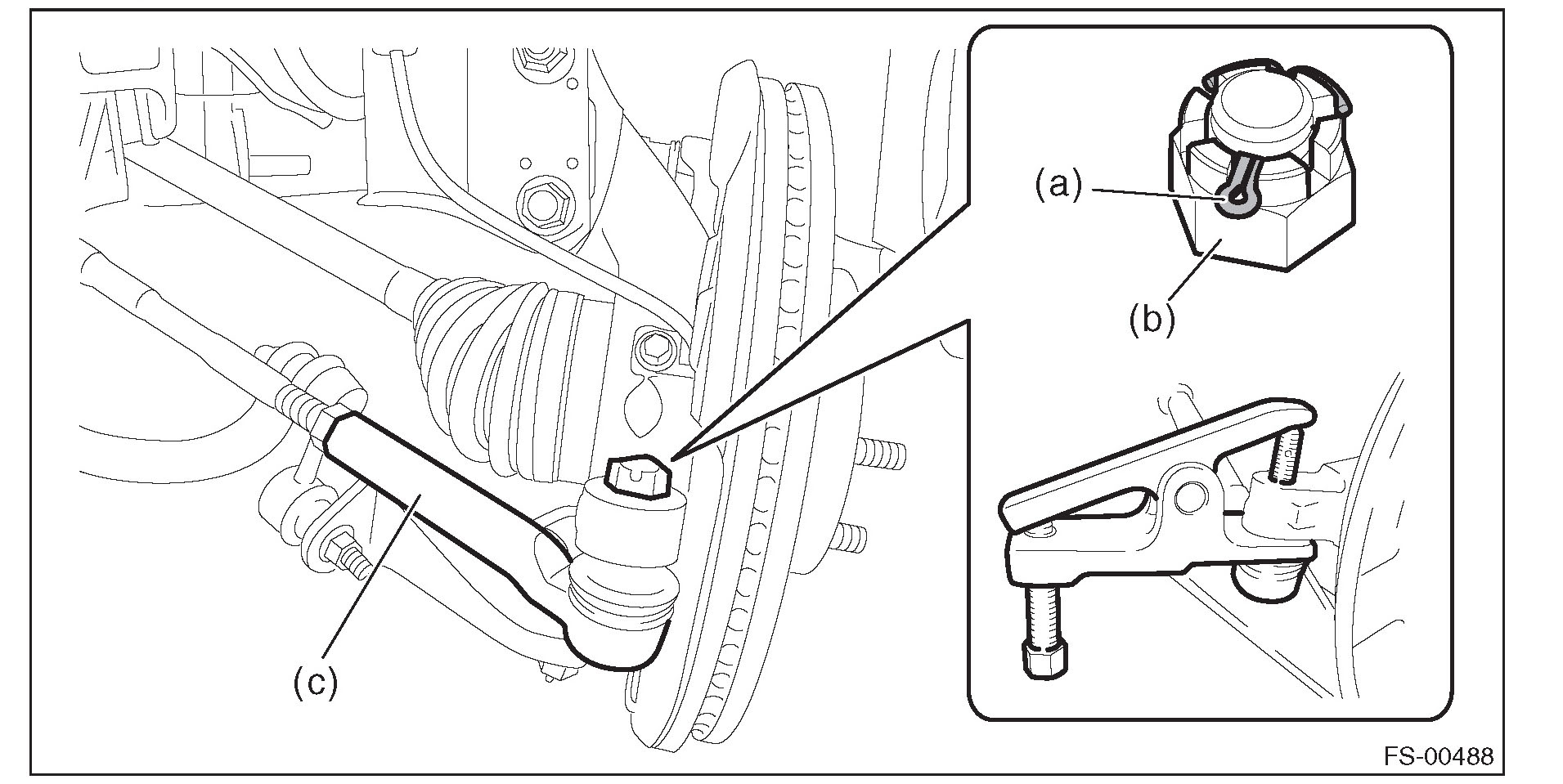 (3) Extract the tie-rod end (c) from the front axle housing.