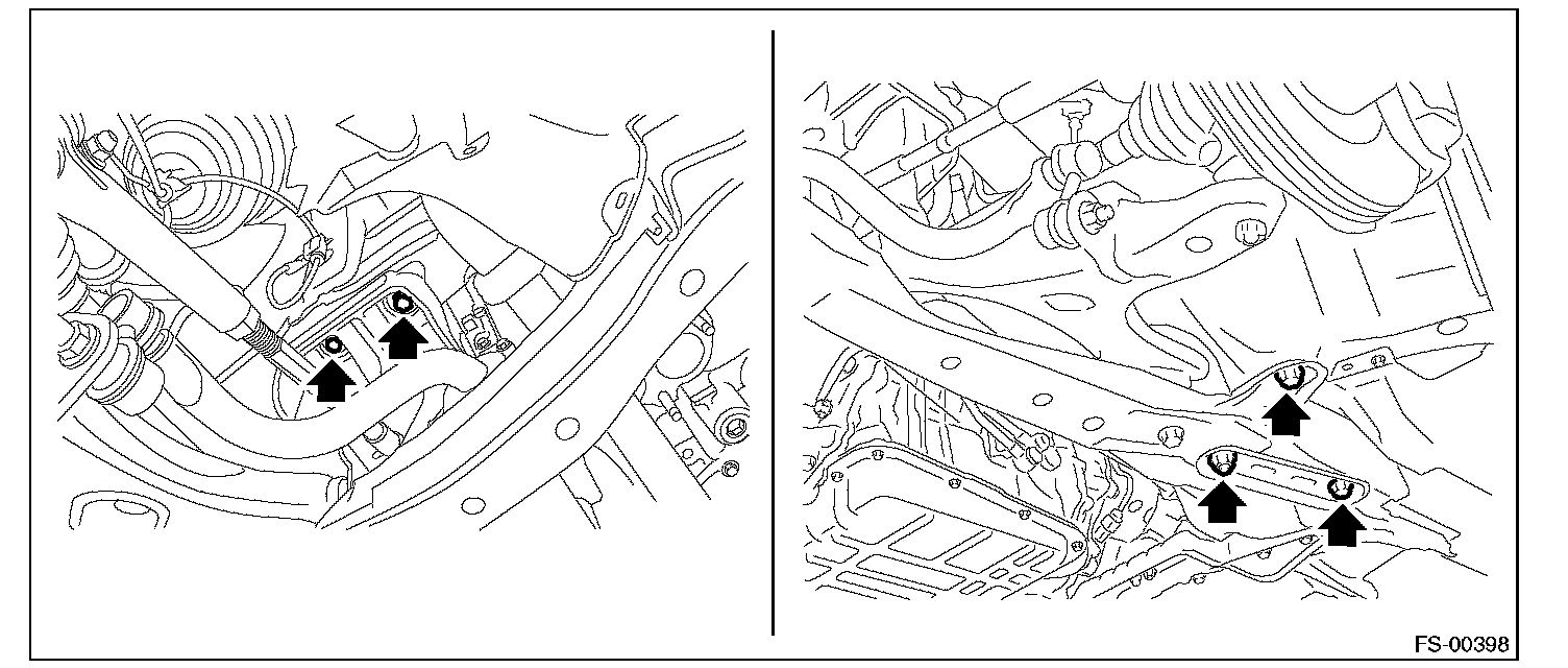11) Replace the engine hanger installed on the engine with the SUBARU genuine engine hanger (H4 nonturbo model) or ST (H6 model).