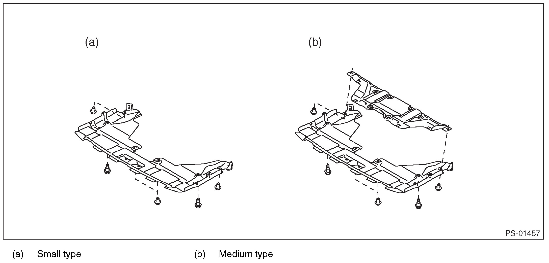 CAUTION: Install the under cover so that the under cover front end (b) comes inside of the front bumper face (a).