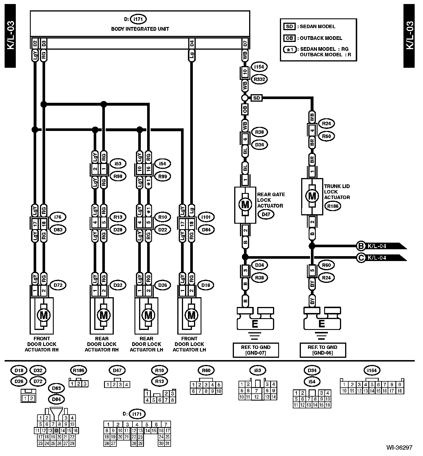 The locations of the Connectors or Grounds shown within these diagrams can be found via the connector or ground number at Vehicle Locations.