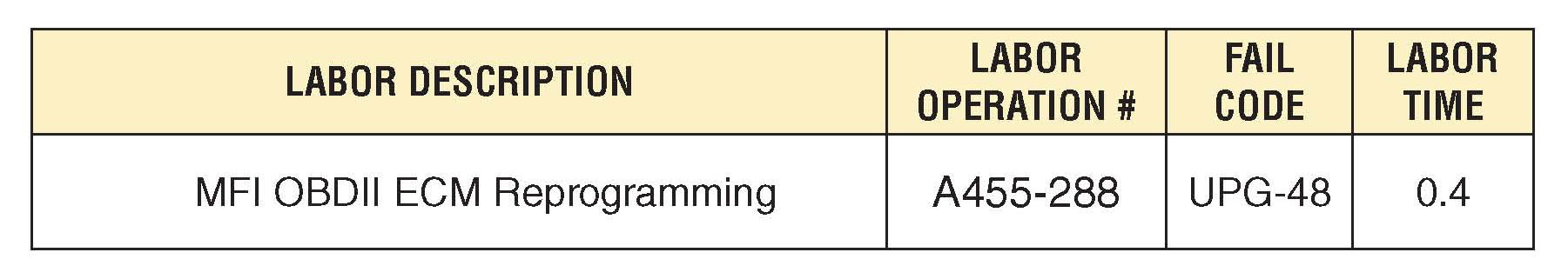 ^ In the event of an ECM replacement, always confirm the new ECM has the most recent software and CID number installed before releasing the vehicle.