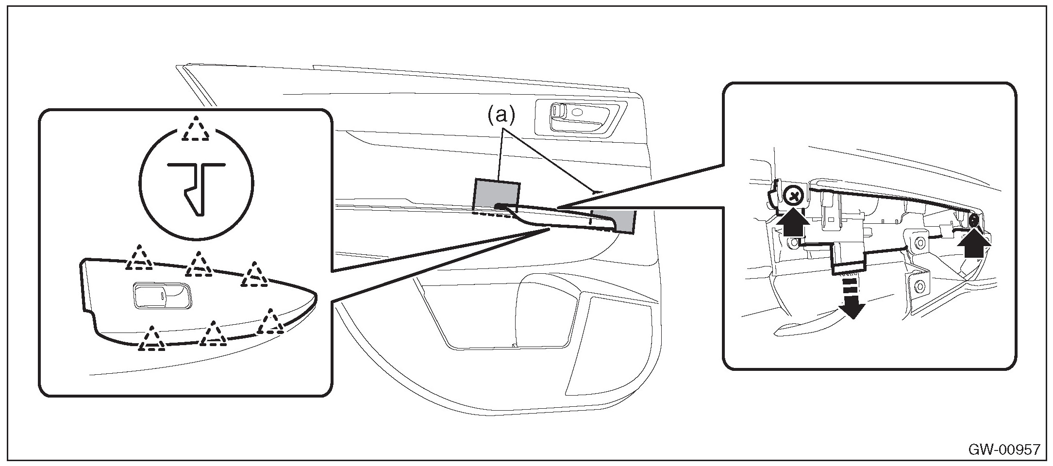 1. Insert a sheet of protective paper (a) between switch panel and door trim.