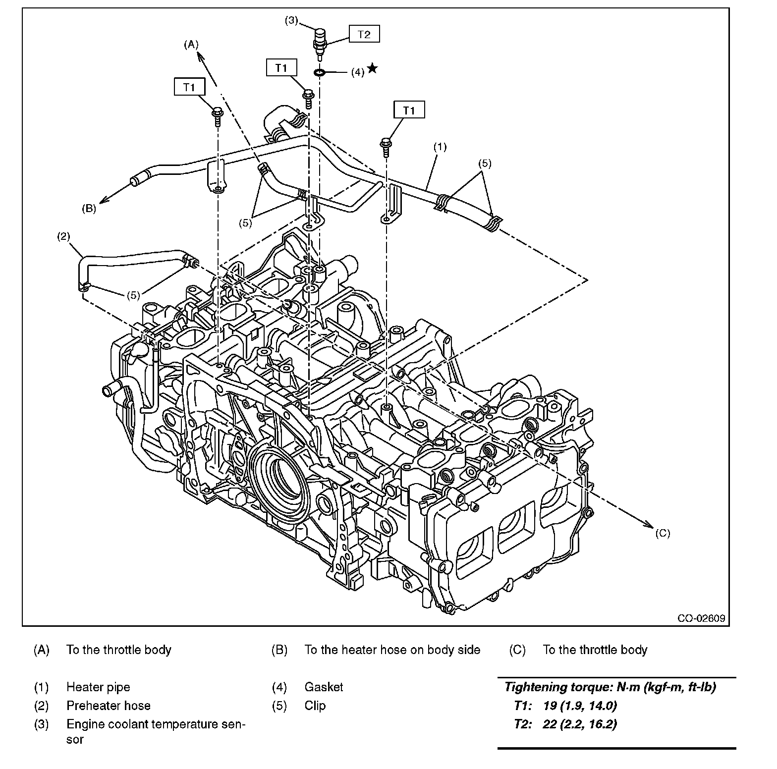 ENGINE COOLANT TEMPERATURE SENSOR AND HEATER HOSE