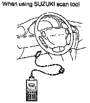 - When using SUZUKI scan tool, connect SUZUKI scan tool to DLC with ignition switch OFF.