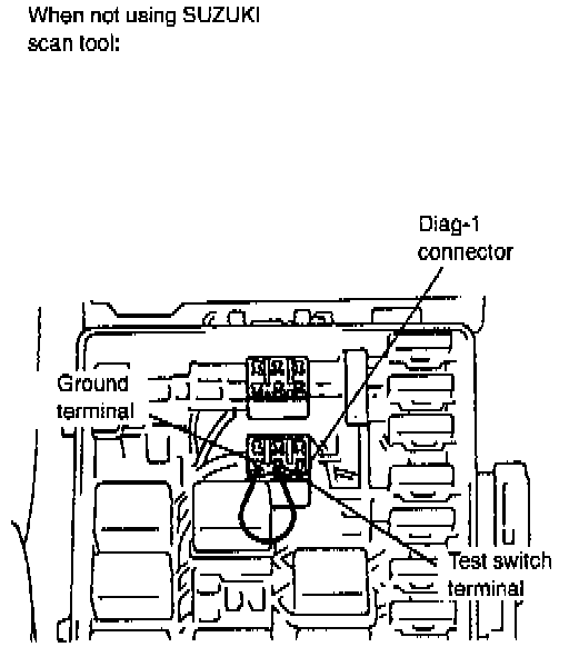 - After checking and/or adjusting Initial Ignition Timing, release ignition timing fixation by SUZUKI scan tool or disconnect service wire from Diag-1 connector.