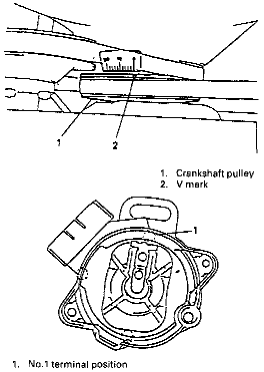 1) If distributor rotor has not been positioned at No.1 terminal of distributor cap in distributor removal, perform following step.