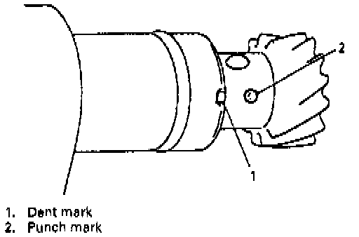 (2) After aligning two marks, remove cylinder head cover to visually confirm that the rocker arms are not riding on the camshaft cams at No.1 cylinder. If the arms are found to be riding on the cams, turn over crankshaft 360° to align the two marks anew.