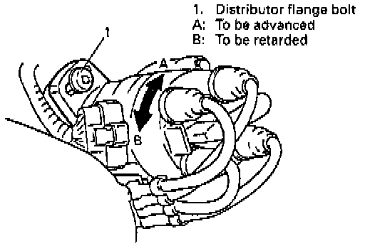 8) After tightening distributor flange bolts, recheck that ignition timing is within specification.