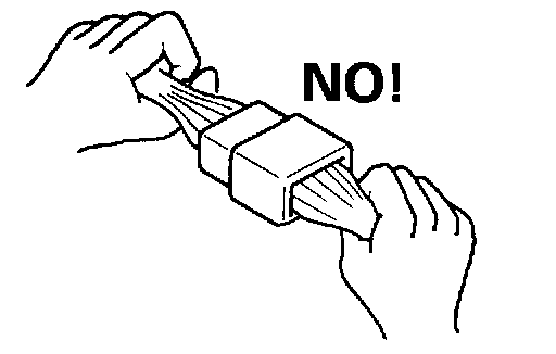 ^ When disconnecting connectors, never pull the wiring harnesses. Unlock the connector lock first and then pull them apart by holding connectors themselves.