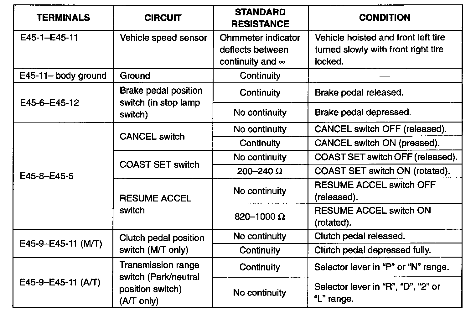 Home >> Suzuki >> 2000 >> Esteem GL Sedan L4-1.6L >> Repair and Diagnosis >> Cruise Control >> Cruise Control Module >> Testing and Inspection