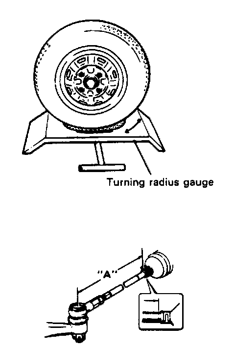 If steering angle is not correct, check if right and left tie rods are equal in length ("A").