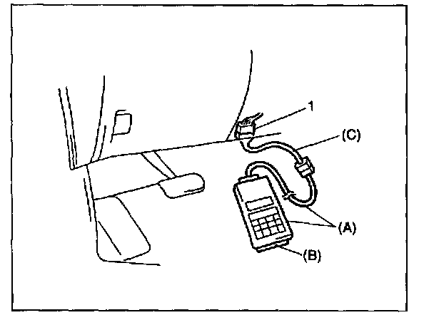 4. Connect SUZUKI scan tool to DLC (1) with ignition switch OFF, restart engine and fix ignition timing by using fixed spark mode of SUZUKI scan tool.