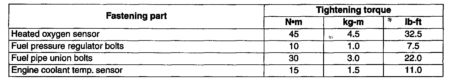 Tightening Torque Specification: