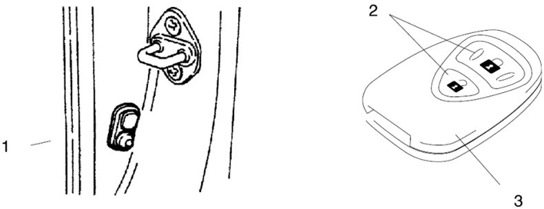 9. Press "LOCK" or "UNLOCK" button (2) transmitter (3) within 5 seconds after step 8) and confirm that all doors are operated from lock to unlock.