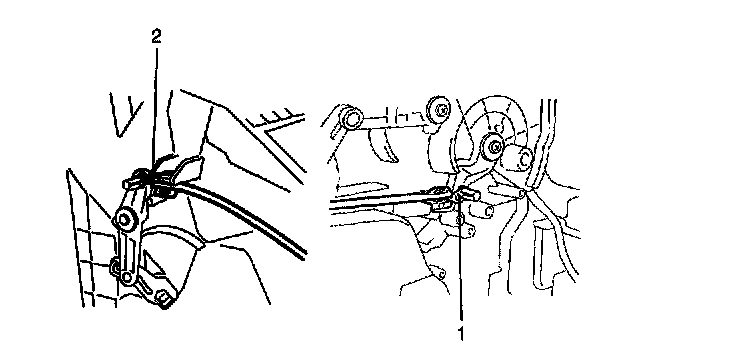 4. Disconnect air flow selector cable (1) and temperature selector cable (2).