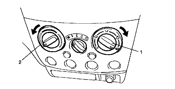 1. Set air flow selector (1) and temperature selector (2) as shown in figure.