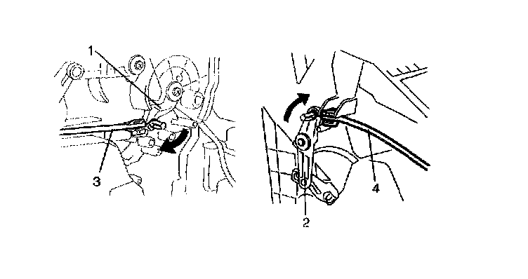 2. Push air flow selector link (1) and temperature selector link (2) fully in arrow direction.