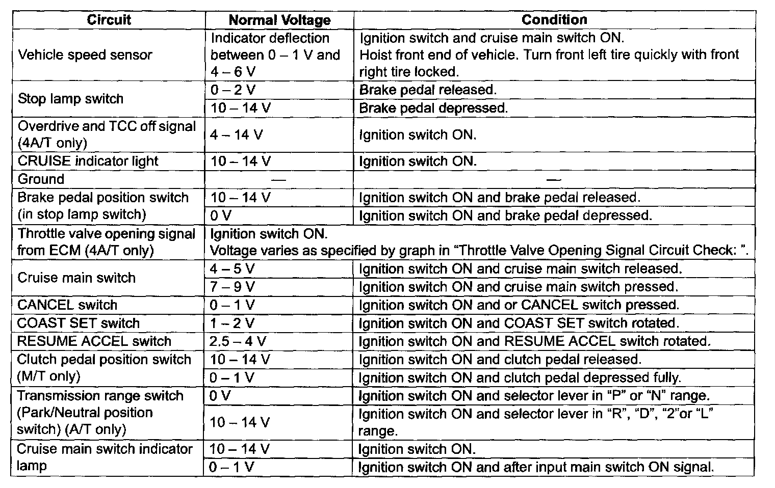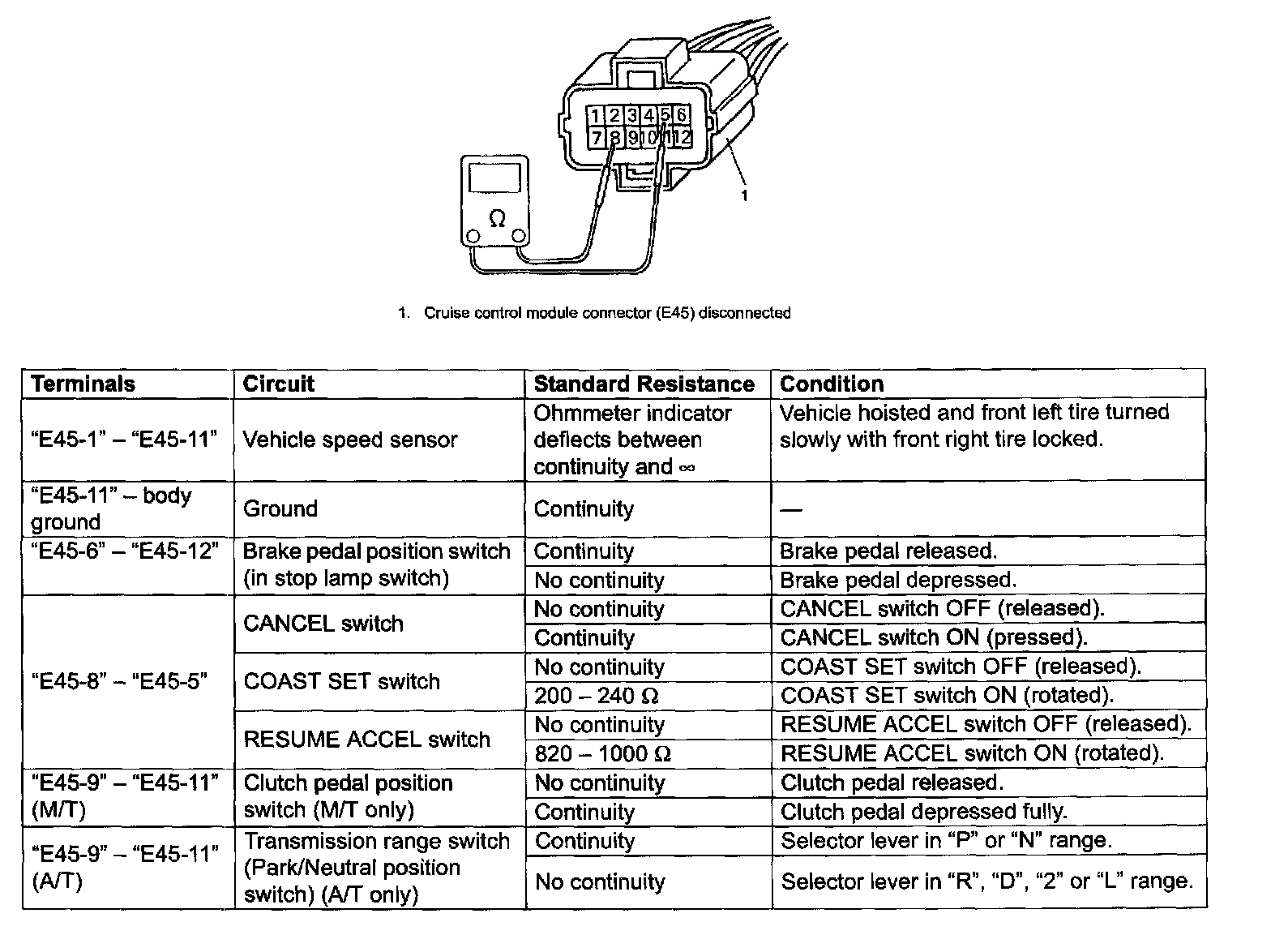 Home >> Suzuki >> 2002 >> Esteem GL Sedan L4-1.8L >> Repair and Diagnosis >> Cruise Control >> Cruise Control Module >> Testing and Inspection