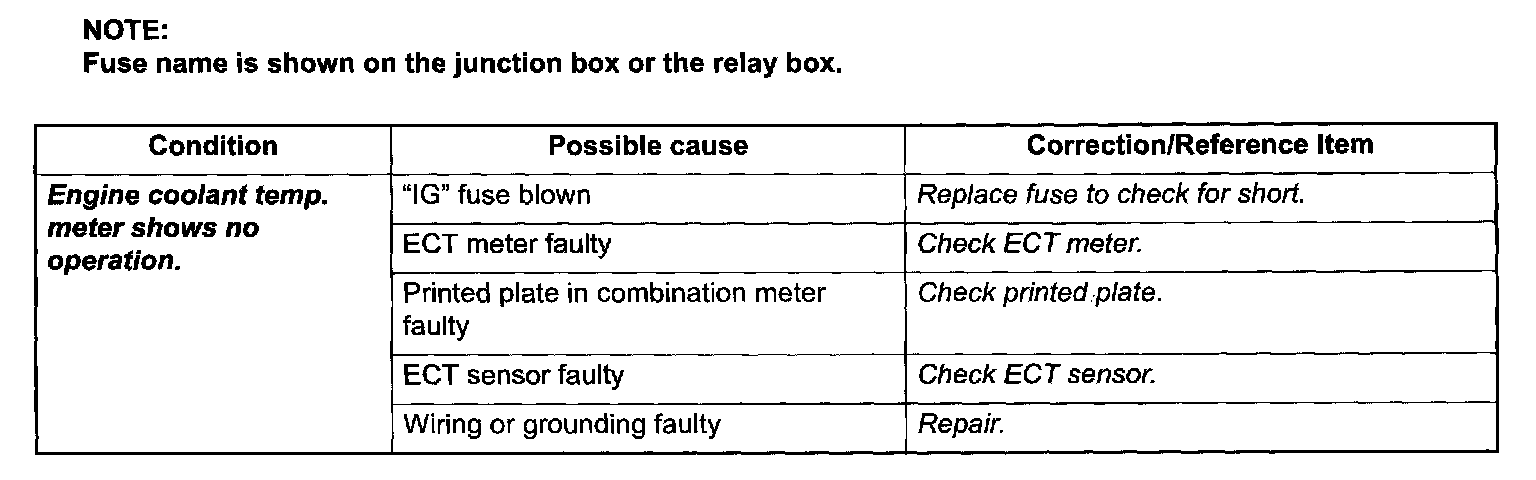 Engine Coolant Temp. (ECT) Meter And ECT Sensor Symptom Diagnosis: