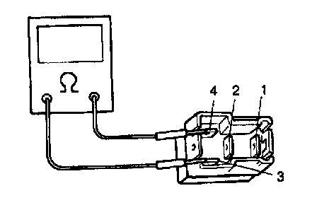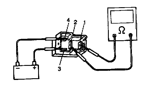 4. Check that there is continuity between terminals "1" and "2" when battery is connected to terminals "3" and "4". If found defective, replace.