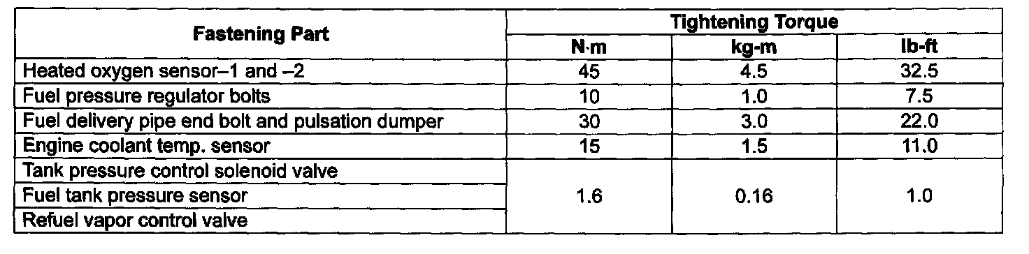Tightening Torque Specifications:
