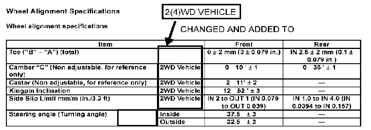 Home >> Suzuki >> 2003 >> Aerio AWD L4-2.0L >> Repair and Diagnosis >> Maintenance >> Alignment >> Technical Service Bulletins >> Steering/Suspension - Alignment Designation Update