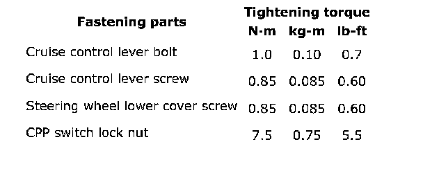 Tightening Torque Specification: