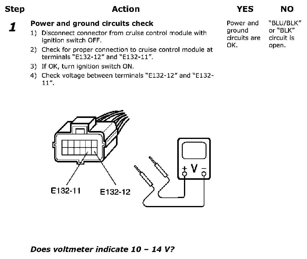 Cruise Control Module Power and Ground Circuits Check