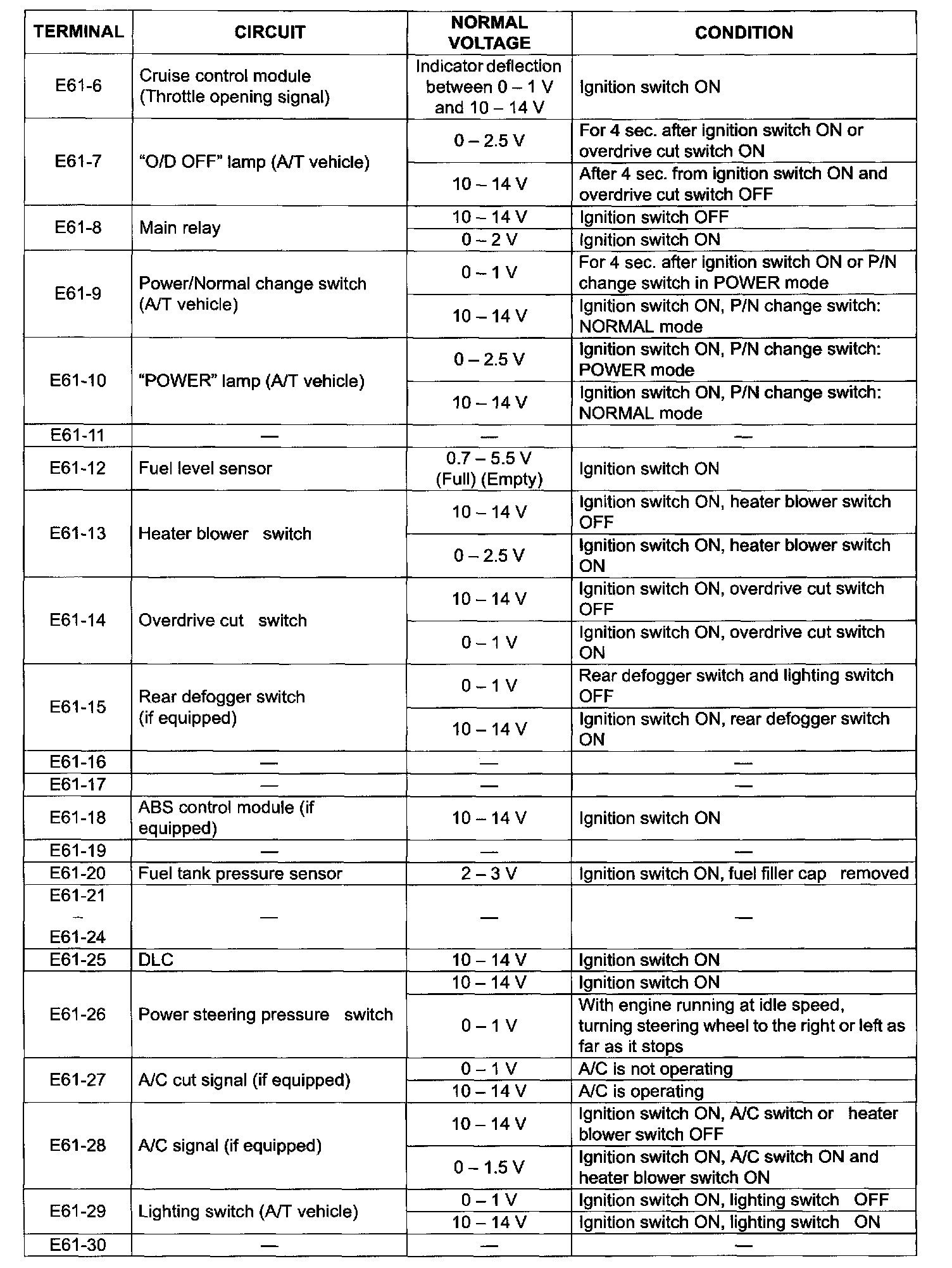 Terminal E61-6 - E61-30: