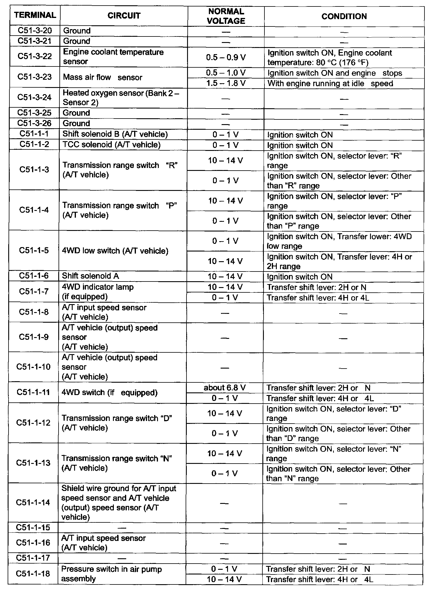 Terminal C51-3-20 - C51-1-18: