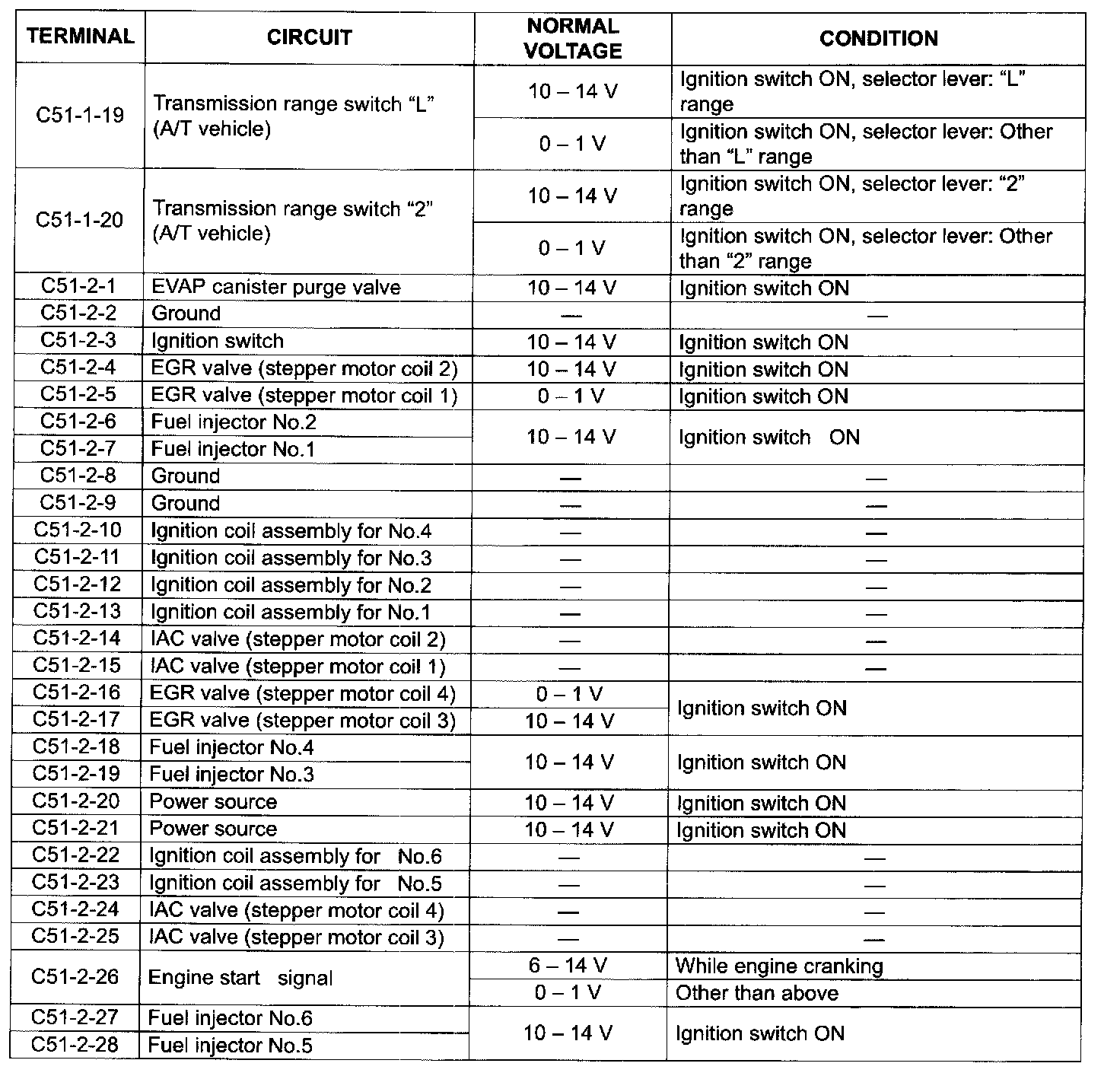 Terminal C51-1-19 - C51-2-28: