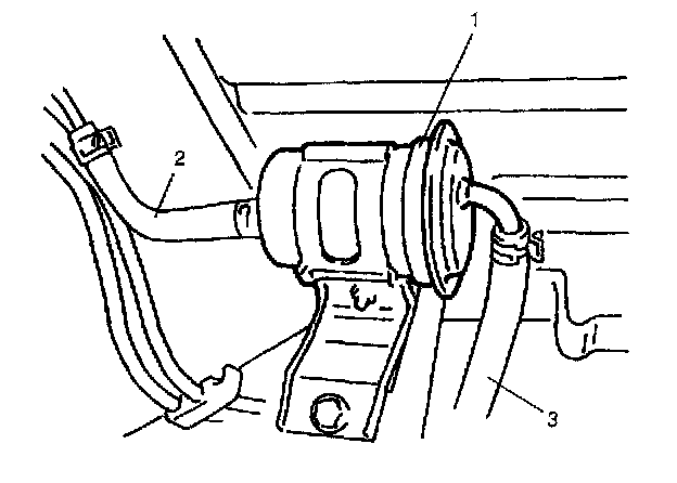4. Disconnect inlet hose (3) and outlet hose (2) from fuel filter (1).