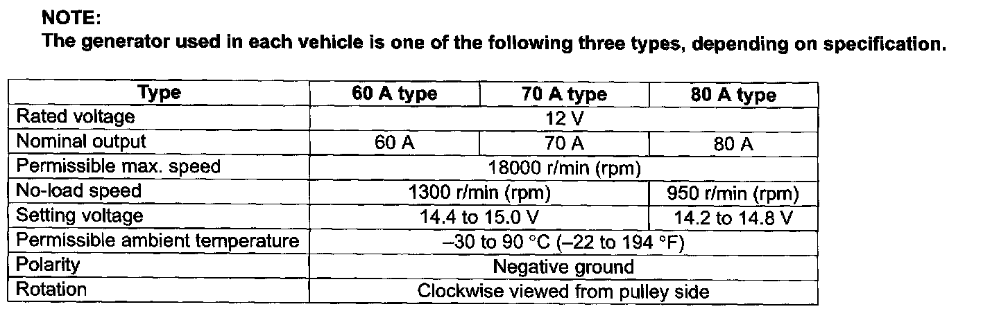 Charging System Specifications - Generator: