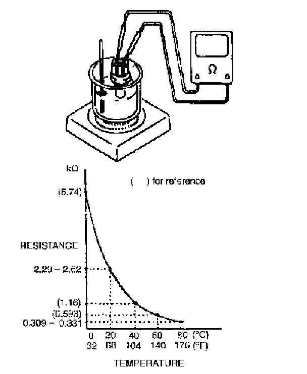 Immerse temperature sensing part of ECT sensor in water and measure resistance between sensor terminals while heating water gradually.